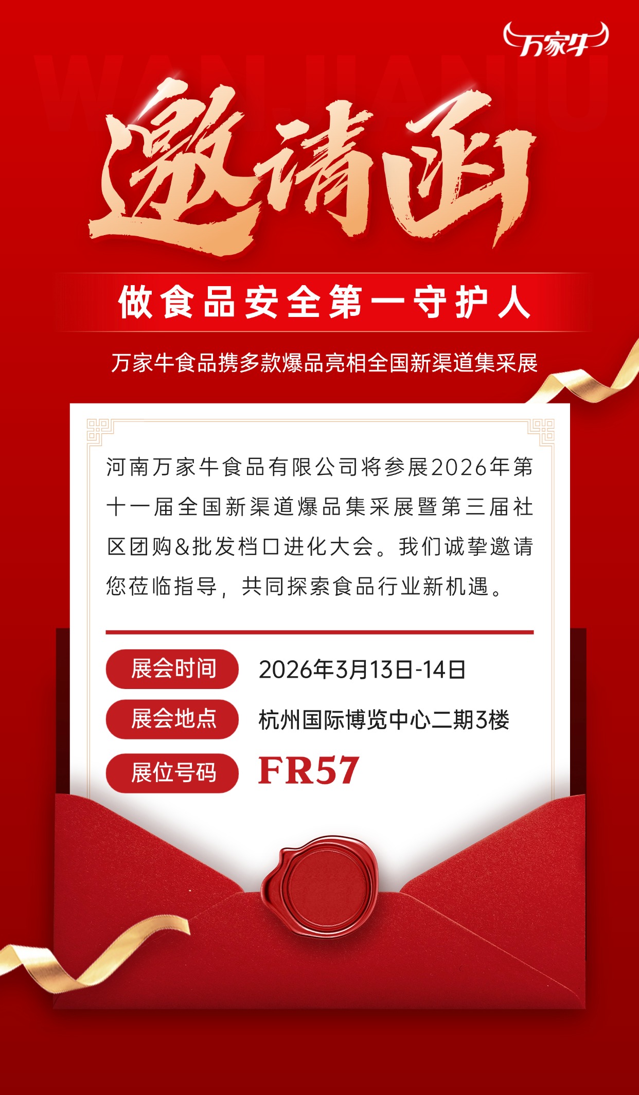 餐饮新风向,美味新选择! 万众期待如约而至,河南省万家牛食品有限公司携全品类爆款硬核亮相,以深耕食品行业的匠心,践行 “方便是势,健康为真” 的经营理念,带来果酱、西式餐食配料、拌饭酱三大核心系列数款单品,从家庭餐桌的日常美味,到餐饮商用的标准化解决方案,一站式满足多元消费需求! 现场不仅有超惊艳的美味试吃,更有专属合作政策、定制化服务重磅上线,诚邀各位合作伙伴、美食爱好者莅临展位,共品真材实料的地道风味,共拓餐饮市场新商机! 鲜果纯熬果酱系列 90%+ 果肉加持,0 添加吃尽自然鲜果香 严选当季新鲜水果,传承传统慢火熬制工艺,锁留水果本味与营养,果肉含量≥90%,每一勺都能吃到清晰果粒。 拒绝果胶、防腐剂、人工色素,配方干净纯粹,老人、孩子均可放心食用。 盒装、瓶装、罐装三大规格精准适配,承包便携出行、家庭日常、餐饮商用全场景果味需求! 多规格适配全场景 ✅ 盒装:独立小份包装,单份定量、开盒即食,携带方便且干净卫生,避免开封后变质浪费,适配上班族早餐、学生课间加餐、户外出行、下午茶便携,也是商超零售、便利店铺货的爆款之选; ✅ 瓶装:玻璃瓶装设计,密封保鲜性佳,容量贴合家庭日常食用量,开封后冷藏即可,取用方便,颜值与实用性兼具,适配家庭早餐、日常佐餐、家庭烘焙,适合商超、社区团购等家庭消费渠道; ✅ 罐装:大容量罐装设计,为餐饮商用款,性价比高、用量省,密封工艺好、易储存,可满足大批量、高频次使用需求,适配烘焙店、咖啡馆、西餐厅、奶茶店等餐饮商用场景,支持批量采购与长期供货。 西式餐食配料系列 匠心手作地道风味,一键复刻餐厅级西式美味 从成品披萨到饼胚、酱料、意面,西式餐食核心食材一站式配齐,摒弃工业化生产,以手工工艺打造地道经典风味,同时简化制作流程,兼顾便捷速食与高品质口感,无需厨艺,家庭自制、餐饮商用均可轻松复刻餐厅级西式美味。 多口味可选、6大规格全覆盖,支持口味与尺寸定制,精准适配外卖、家庭、西餐厅、自助餐饮、企业团餐等全场景! 现烤级手工速食披萨 无需解冻,空气炸锅 180℃加热 8-11 分钟或烤箱加热 6-8 分钟即可享用,省时高效,搭配新西兰安佳芝士,实现瀑布式拉丝效果,馅料足量铺满、新鲜优质,每一口都超满足! 百搭手工披萨饼胚 与手工披萨采用同款匠心工艺,精选高筋面粉手工揉制搭配低温发酵,饼胚麦香浓郁、口感劲道,成型好不易破。 可自由搭配披萨酱、肉类、果蔬、芝士等食材,解锁创意披萨吃法,支持尺寸定制,兼顾家庭自制与餐饮商用,省去饼胚发酵、揉制的复杂步骤,大幅节省制作时间,是西式餐饮商家高效备货、家庭自制披萨的便捷基底。 意式经典披萨酱 涵盖经典意式配方与创新融合配方,风味浓郁地道,还原披萨核心调味;无防腐剂添加,用料扎实无杂味,酱体浓稠挂味,涂抹均匀不流汁; 一酱多用,不仅是披萨核心配料,还可搭配意面、焗饭、烤吐司、煎肉等,解锁多款西式美味,家用、商用双端通用。 真材实料拌饭酱系列 0添加/低添加干净配方,三餐调味 “灵魂之酱” 集经典香辣、红烧风味与异域特色于一体,坚守 0 添加/低添加的干净配方,严选优质牛肉、鸡肉为核心食材,传统工艺慢火熬制、慢炖锁鲜,拒绝工业勾兑,肉含量扎实、口感醇厚,每一口都能吃到真实肉感。 开盖即食无需复杂烹饪,一站式解决家庭餐桌、餐饮商用的三餐调味需求,百搭适配各类食材,是家庭餐桌刚需,更是餐饮门店高效出餐的秘密武器! 香辣牛肉酱 肉含量≥50%,大块牛肉颗粒清晰可见,每一口都能嚼到劲道肉粒,肉香醇厚;入口先是醇厚酱香,后有香辣迸发,微辣口感恰到好处,浓郁却不刺激;0 添加干净配方,开盖即食,拌面条、配米饭、抹馒头、炒青菜,百搭不挑食材。 美味不打烊,商机不等待! 河南省万家牛食品有限公司始终坚守初心,以严选原料、传统工艺、创新设计,打造兼具健康、便捷、美味的食品系列,无论是家庭日常消费,还是餐饮商用供货,我们都能提供精准、优质的解决方案。 展会现场,我们在展位静候您的到来,与您一同品鉴匠心美味,探讨合作模式,解锁餐饮市场新机遇,携手共赢,让美味走进更多餐桌!